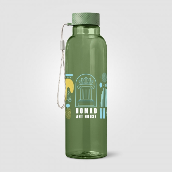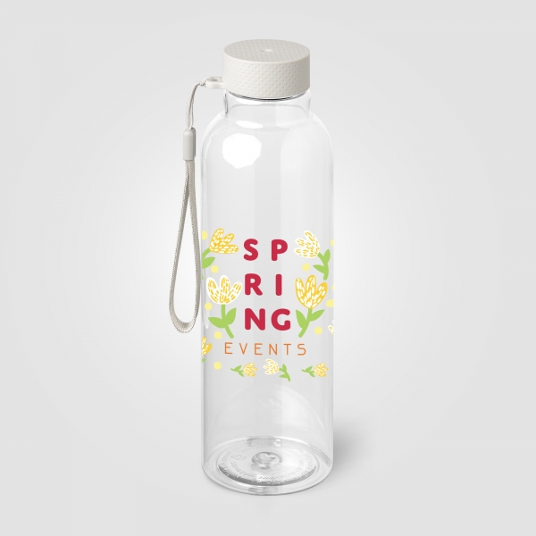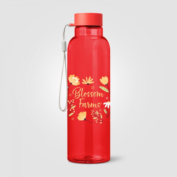 Aura rPET Wrist Strap Bottle - 710 ml rPET Bottle is a single-wall bottle with a translucent finish, made from recycled PET. It features a leakproof, textured screw-on lid with a matching colour and an attached strap for easy carrying. With a capacity of 710 ml, this bottle is ideal for cold drinks only. It is not suitable for dishwashers or microwaves, making it a practical and durable choice for everyday use.
