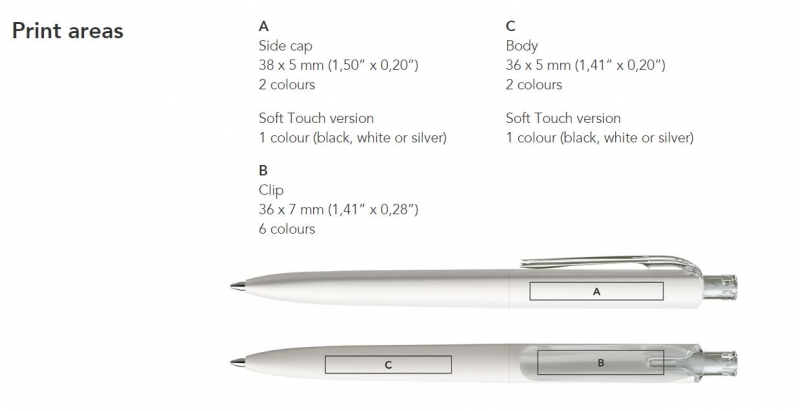 Branding Areas: Barrel - 36x5mm Clip - 36x7mm