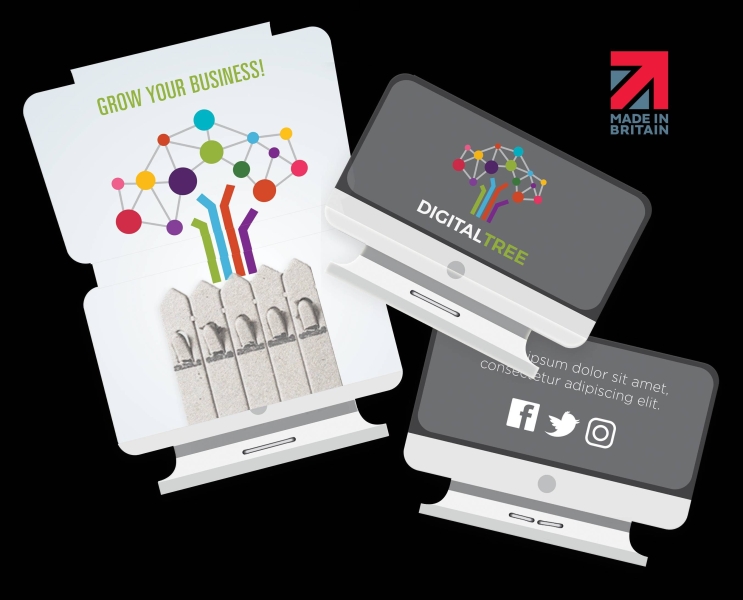 Computer Seedsticks - this registered trademarked product evolved from a matchbook over 30 years ago with the striking end being replaced by seed! Seedsticks can be printed full colour, inside and out, using veg and soy inks on FSC certified paper. The product is Made in Britain certified with a wide range of flower, vegetable, herb and tree seeds available. Tear it, plant it and watch it grow.