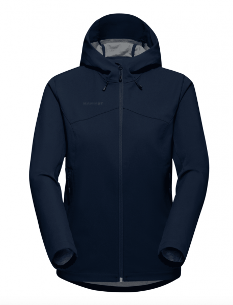 A robust softshell jacket with hood that can be used all year round for everyday use. The breathable 3layer material with membrane is windproof and at the same time guarantees optimal moisture transport. The light 4way stretch fabric is comfortable to wear and offers a lot of freedom of movement. The outer fabric consists of 30 recycled material and is impregnated without PFC. The highquality jacket is very durable and therefore environmentally friendly. The reduced cutlines allow to place the company logo as desired alongside the subtle tonal Mammut branding.