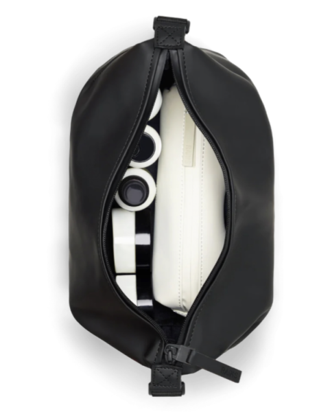 The Hilo Wash Bag is cut from Rains’ signature waterproof PU fabric, engineered for carrying strength, durability, and a smooth feel.