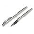 BRAND NEW! Exceptionally smart, professional and elegant, for extra brand gravitas. Twist action ballpen with a shiny silver metal finish barrel and grid effect detail to lower barrel. Shiny silver plain upper barrel. Black inner trim to upper nib. Parker style black ink refill. Indvidually cellowrapped as standard. Presentation Gift Box available as optional extra. Matching Roller Ball and Fountain Pen also available.