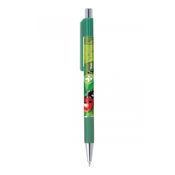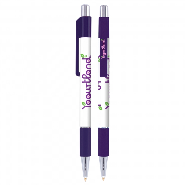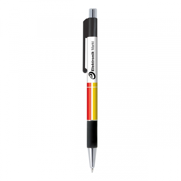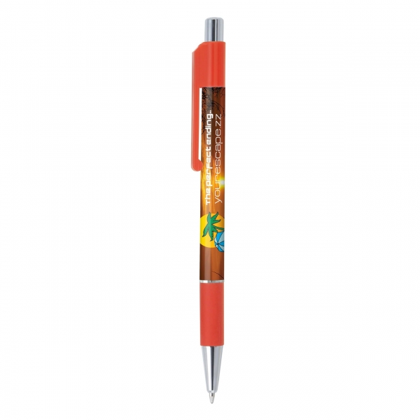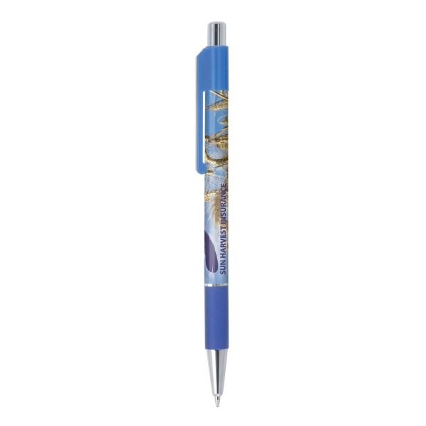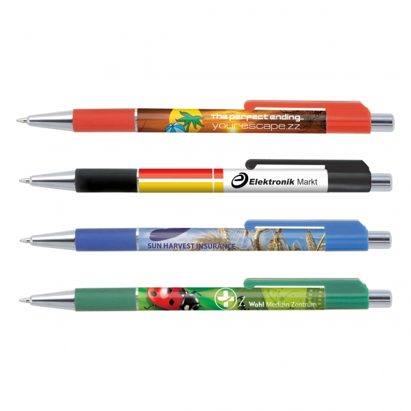 The elegant Astaire Chrome Grip ballpoint pen has chrome accents, a rubber grip for comfort and is available in 6 classic colours. Digitally printed, full colour to photo-quality 360° around the barrel. Please note that the clip is moveable, allowing for a true 360º branding area.