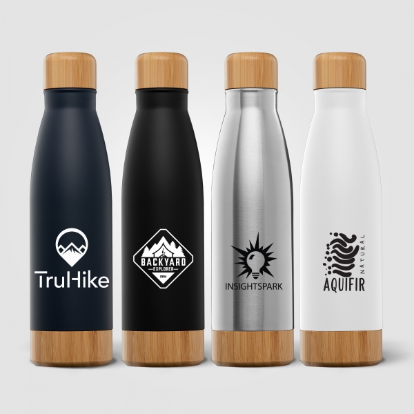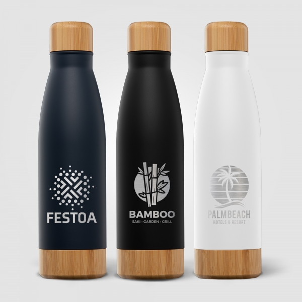 The Ibiza Bamboo - 650 ml Double-Wall Stainless Bottle can be used for hot and cold beverages, keeping drinks hot for up to 8 hours and cold for up to 24 hours. A wide spout makes for fast hydration while on the go. The bottle has an elegant matte finish. The bamboo lid is leakproof, and the bamboo bottom unscrews to make cleaning especially easy (hand wash only). Each bottle comes individually kraft boxed