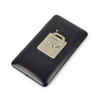 Metal ring that sticks to the back of your mobile phone to act as a hands free stand. Slot your finger through the 360 degree rotating ring for added security when in use. Available in a matt silver finish.