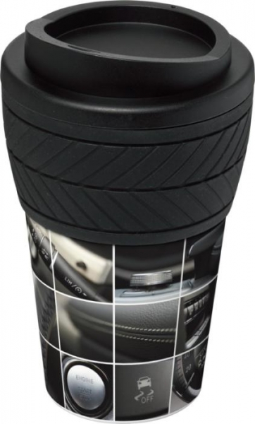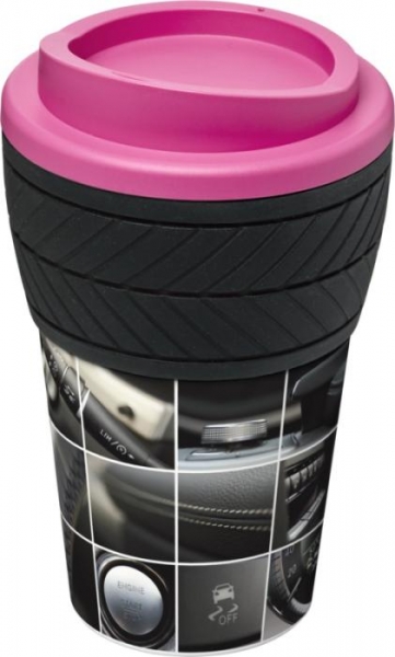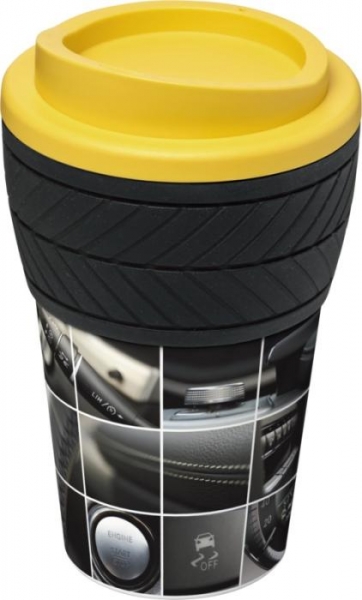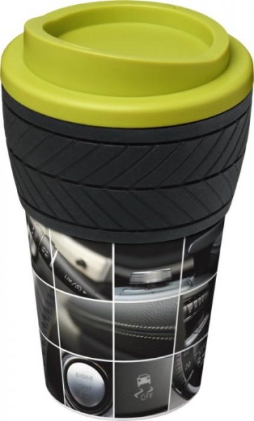 Double-wall insulated tumbler with twist-on lid and tyre design silicone grip. The outer layer of the tumbler is made from recycled plastic. Tumbler features a full colour wraparound design moulded to the product, making it long-lasting and durable. EN12875-1 compliant, dishwasher safe, and microwave safe. Volume capacity is 350 ml. Mug is fully recyclable. Mix and match colours to create your perfect mug. Contact customer service for additional colour options. Made in the UK. Packed in a home-compostable bag. BPA-free. PP Plastic, Silicone Plastic.