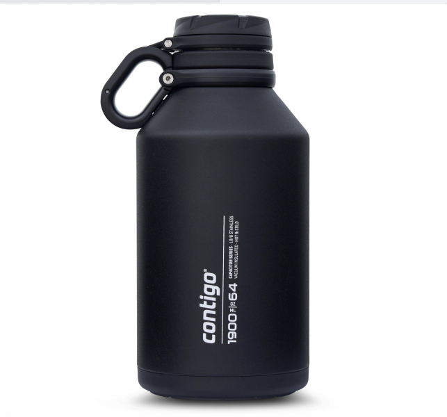 Double-walled, vacuum-insulated stainless steel Contigo® thermo bottle. This large thermos is ideal if you are on the road for long periods. Features include a special powder coating which provides extra grip, a twist-off cap that hangs on the carrying loop once opened, a non-slip bottom and a generous opening to drink from. Thanks to THERMALOCK™ technology, hot drinks stay hot for up to 22 hours and cold drinks cool for up to 43 hours. This bottle is also suitable for carbonated drinks. Lid and body are top-rack dishwasher-safe. Washing by hand is recommended to preserve the imprint. Capacity 1.900 ml. STOCK AVAILABILITY: Up to 1000 pcs accessible within 10 working days plus standard lead-time. Subject to availability. Contigo: the best in quality, design and technology. Immediately recognisable by its sleek and stylish design, strong and solid. The innovative Contigo water bottles and thermo cups are odourless, tasteless and BPA-free. The drinking bottles are operated one-handed and guaranteed to be 100% leak-free, so can be used anywhere, anytime, also on the go. Comes with a 2-year manufacturer's warranty.