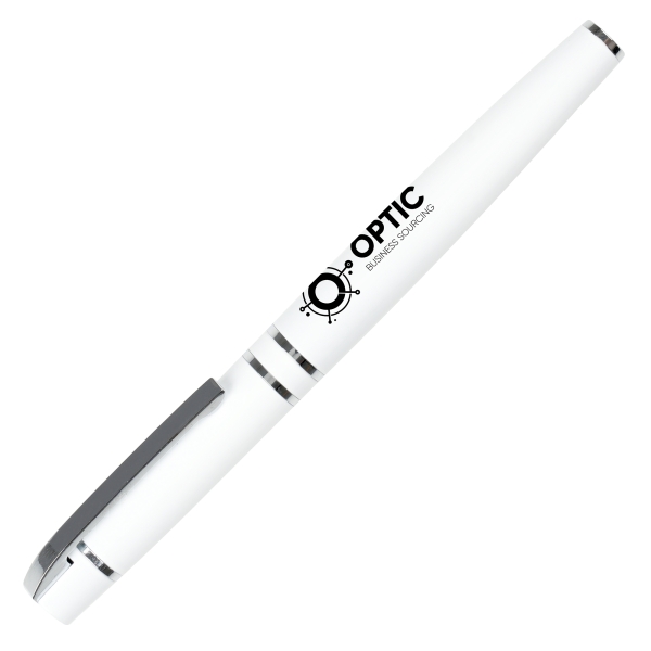 A sophisticated rollerball pen with a stainless steel barrel, polished chrome trims, and removable cap. A prestige writing instrument with a high-end feel. Matching ball pen available to create a set.