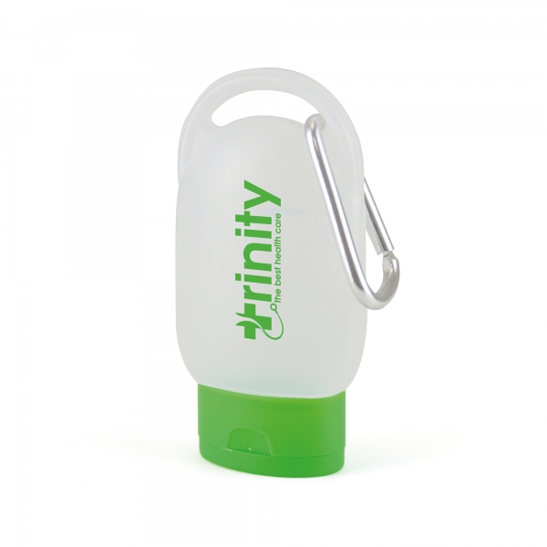 The new normal is to never be without your hand sanitiser. Our 30ml pocket size hand sanitiser comes in a clear plastic casing with coloured lid and the silver carabiner clip means you can hook it on your keyring, belt loop, back pack or handbag so it goes everywhere you go.