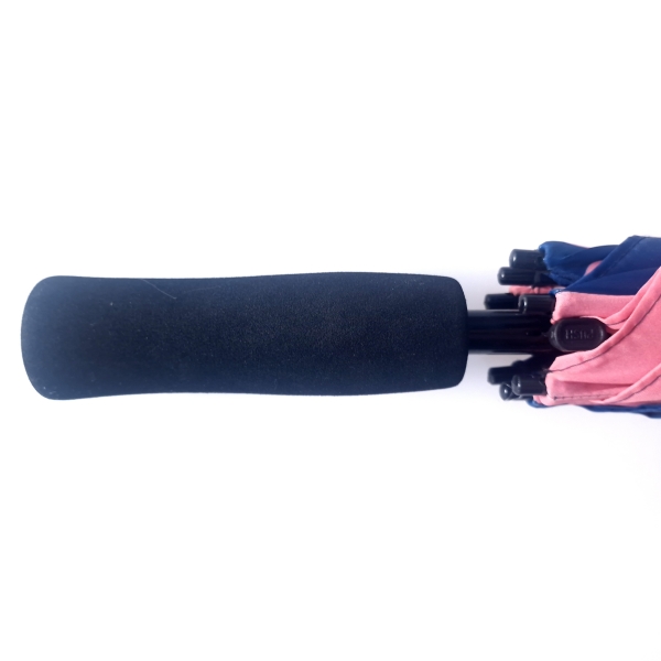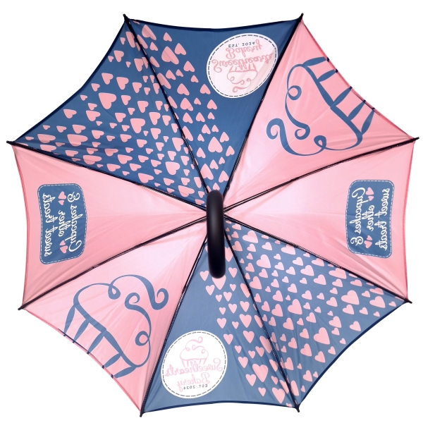 Our best selling, UK made Personalised Executive Walker is printed in a full colour design with a range of different handles available and an automatic opening mechansism.The stem is made from durable Iron and the ribs are made from stormproof fibreglass for greater flexability in windy conditions. Black faux leather crook handle as standard with the option to change to black rubber crock or EVA handle. Bespoke made with a choice of over 50 panel colours. Printing available on the panels, tie wrap and sleeve.