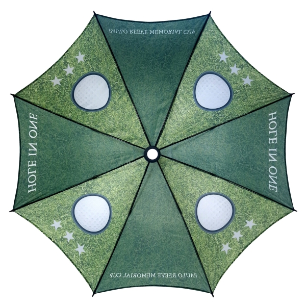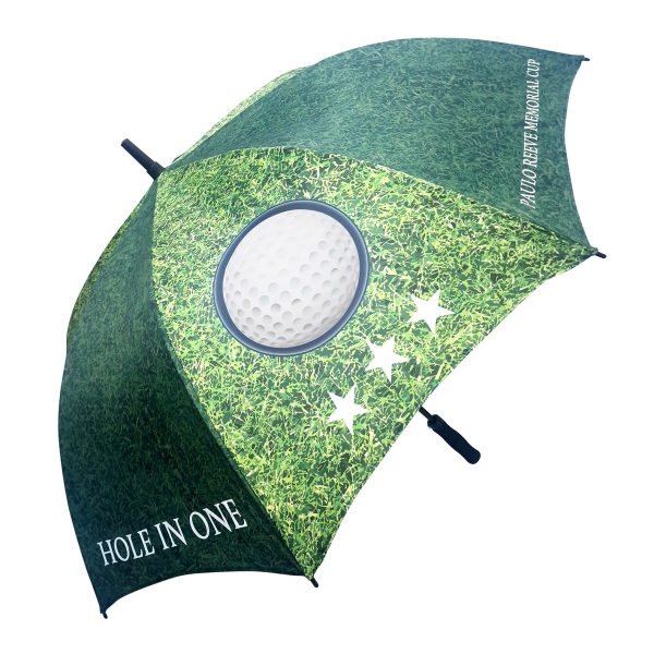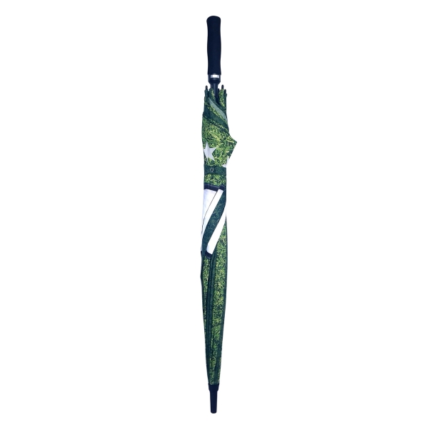 Top quality golf size automatic umbrella. Stormproof fibreglass stem and ribs for increased flexibility and stability in windy conditions, automatic function for quicker opening, stylish black EVA handle with decal option and integrated push button.