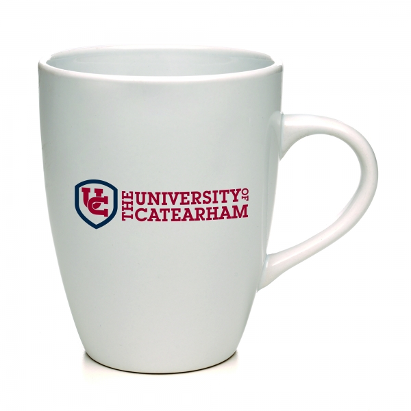 A generous capacity, 400ml mug with a smooth white gloss finish. The tall, slender design offers a great alternative to standard ceramic drinkware options.
