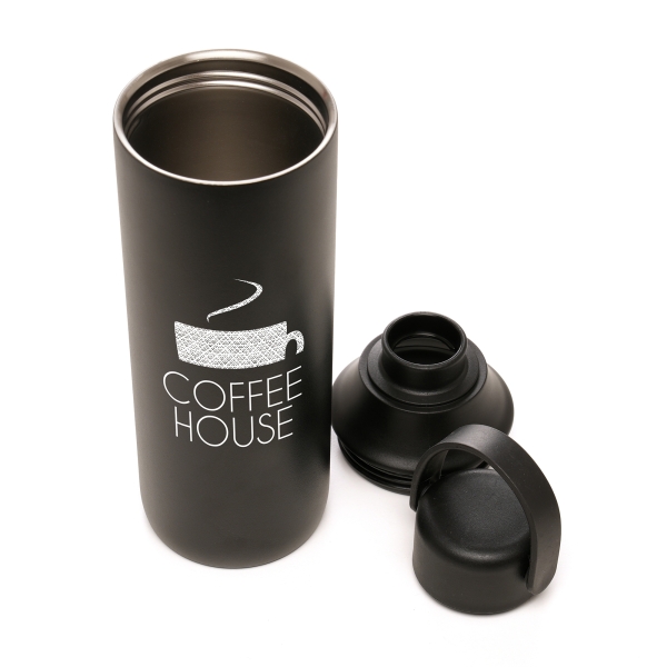 The Porter 660ml Bottle combines premium design with everyday practicality. Crafted from double walled recycled stainless steel, it features a sleek matte finish that gives it a modern, high-quality look while keeping drinks hot or cold for longer. The bottle is equipped with a dual-opening screw top, including a removable top section for easy filling and cleaning, plus a smaller opening for controlled drinking. A rubber carry handle is integrated into the lid for comfortable portability, while the silicone seal helps prevent leaks on the go.