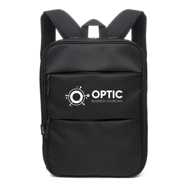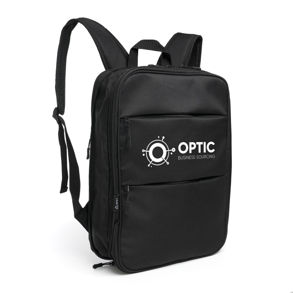 Made from 600D RPET fabric produced from recycled plastic bottles, this extendable backpack combines practicality with a smart, modern design. Compact for everyday use, it features an outer zip that runs around the body of the bag, simply unzip to expand the depth and create extra internal storage space when needed. Inside, a padded panel keeps laptops, tablets and documents protected, while two zipped front pockets and a side bottle holder help organise smaller items. The padded shoulder straps and breathable RPET back panel ensure comfort during daily commutes or travel.