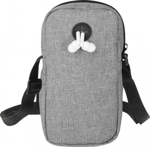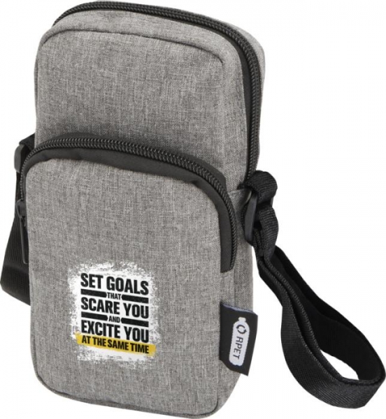 The Ross GRS certified recycled phone pouch keeps your phone safe and provides convenient additional storage with its zipped front pocket for small accessories. With adjustable straps (up to 140 cm), it’s a practical and stylish travel companion for today’s digitalized world. GRS certified recycled polyester.