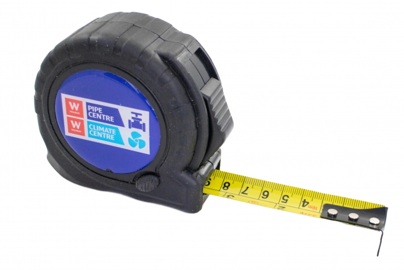 7.5m/25ft professional quality tape measure with an ergonomic rubber grip and shock proof case. Printed with your logo on a deluxe dome label.