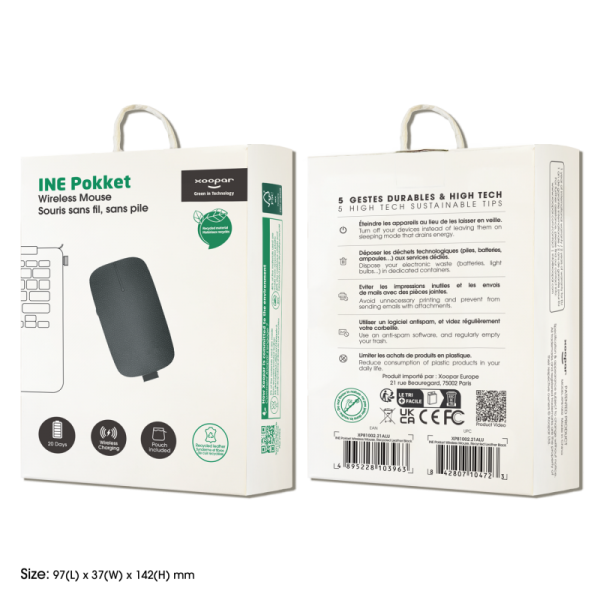 This new executive mouse with wireless connection is available in biodegradable plastic with a grained, leather look finish.