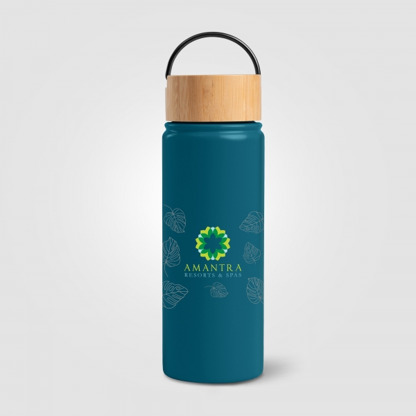 Introducing the Reborn - 530 ml Double Wall Stainless Steel Bottle. This sleek and functional bottle features double-wall vacuum insulation, keeping your hot drinks warm for up to 12 hours and your cold drinks chilled for up to 24 hours. The exterior is crafted from 304 recycled stainless steel with a matte finish, while the interior is also made of 304 recycled stainless steel for optimal temperature retention. The bamboo lid adds a touch of natural elegance, complemented by a handle with a gunmetal finish. With a capacity of 530 ml this bottle is perfect for all your beverage needs. Please note, it is not suitable for dishwashers or microwaves. Ideal for everyday use, whether you're at home, at the office, or on the go.