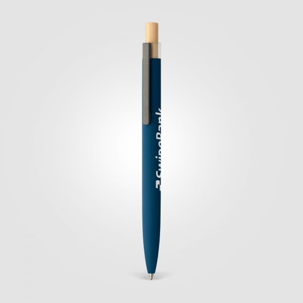 A perfect blend of style and performance, the Reborn Recycled Aluminum Deluxe Pen features a sleek recycled aluminum barrel with a rubber-painted finish. The clear rPET plastic top and bamboo plunger add distinct, quality touches. Featuring a Parker-style refill, it ensures a smooth writing experience for up to 2000 meters. A standout feature of this pen is its laser engraving with a mirror finish, providing a sophisticated touch. Opposite the gunmetal-painted steel clip, a subtle engraved recycled symbol highlights the pen’s sustainable origin.