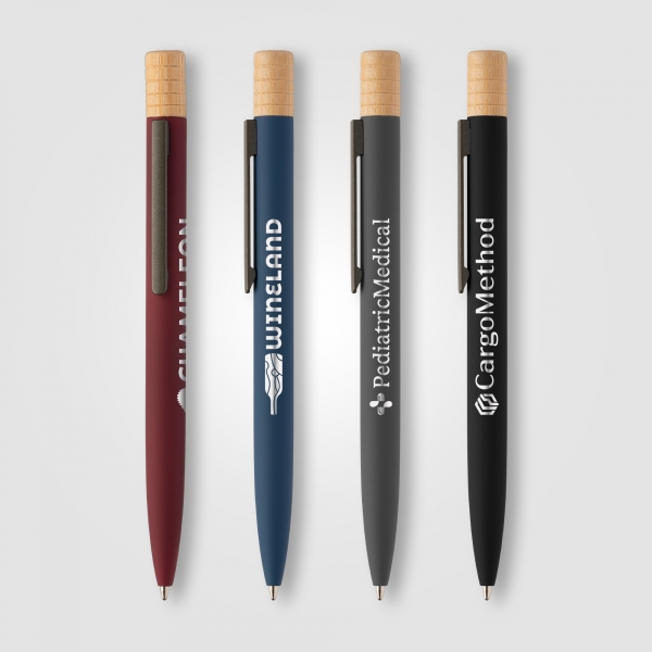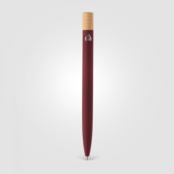 Introducing the Reborn Twist Recycled Aluminium Pen, a distinguished member of the Reborn Family. This pen features a barrel crafted from 100% recycled aluminium. The barrel boasts a soft-touch rubber finish for a comfortable grip, while the top of the pen is made with Bamboo sourced via responsible forestry, complete with scored lines on the surface for added texture. The pen operates with a smooth twist action, and its iron clip is finished in a sophisticated gunmetal paint. Equipped with an FMA Parker refill, it offers an impressive 1800-meter write-out, ensuring a reliable and refined writing experience.