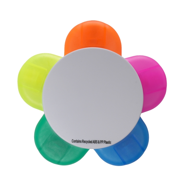 This flower-shaped highlighter is crafted from a recycled ABS plastic shell and features a recycled PP nib and base, ensuring smooth and consistent marking. It also includes a pre-printed recycled message.
