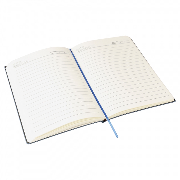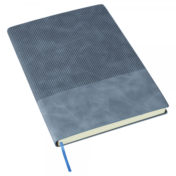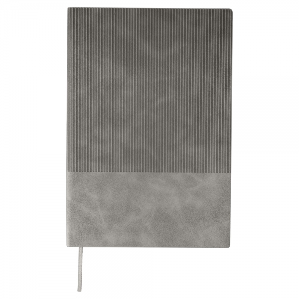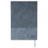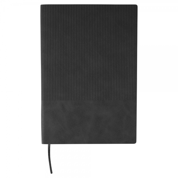 Recycled PU notebook corduroy-look finish on the top part of the front and back. Includes a ribbon bookmark and 100 lined pages of 80gsm paper. Features an embossed recycled logo on the back.